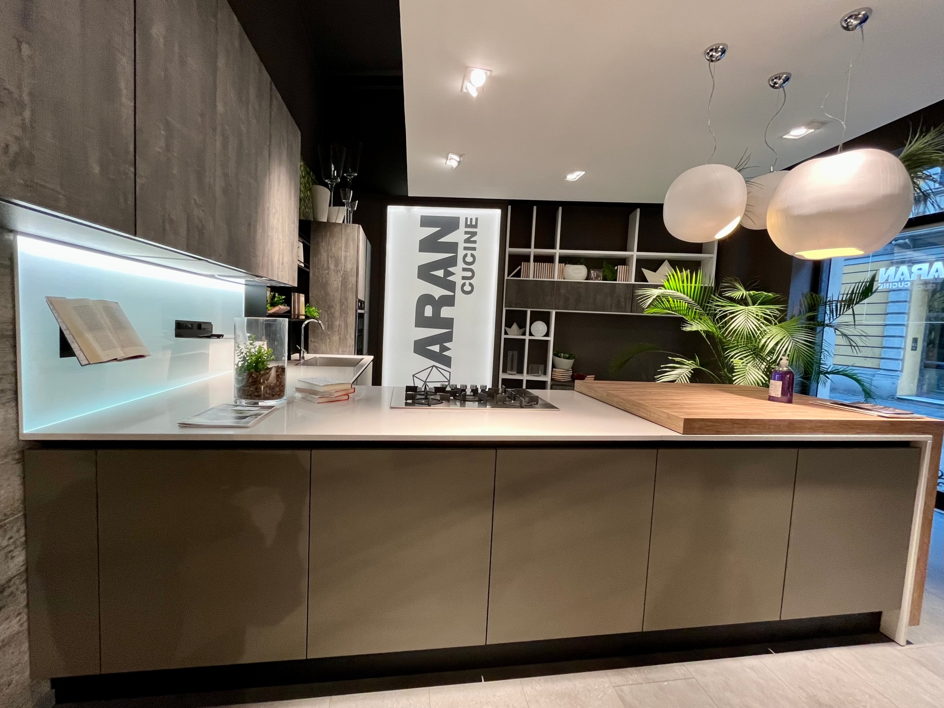Le nostre cucine spaziano da un design moderno, all’ultra moderno fino al più classico. Aran rappresenta il prodotto di arredamento italiano più venduto al mondo ma in Italia si conosce poco perché su strada è arrivato negli ultimi anni, prima preferiva dedicarsi al mercato estero oppure costruire telature specializzate. Abbiamo più di mille finiture, dal laminato tradizionale alla cucina in vetro e in pietra, mentre per gli elettrodomestici ci affidiamo ai fornitori esterni. Le cucine hanno una modularità che va a multipli di 13 e i piani sono progettati e regolati seguendo l’altezza del cliente in modo da garantire il massimo del comfort durante l’utilizzo. Anche l’altezza degli zoccolini va in questa direzione: sono più arretrati rispetto alle cucine normali, così da potersi avvicinare al meglio al piano di lavoro e hanno anche altezze differenti. Il tutto per rendere la zona isola, sia fisicamente che visivamente, il più possibile simile al soggiorno. Infatti, i nuovi dettami dell’architettura, prevedono che la cucina sia unita al living, cercando di nasconderla il più possibile, tant’è che realizziamo anche armadi per racchiudere elettrodomestici o utensili. Aran è molto attenta all’ambiente e utilizza anche materiali riciclati e riciclabili, laccature e resine vegetali.