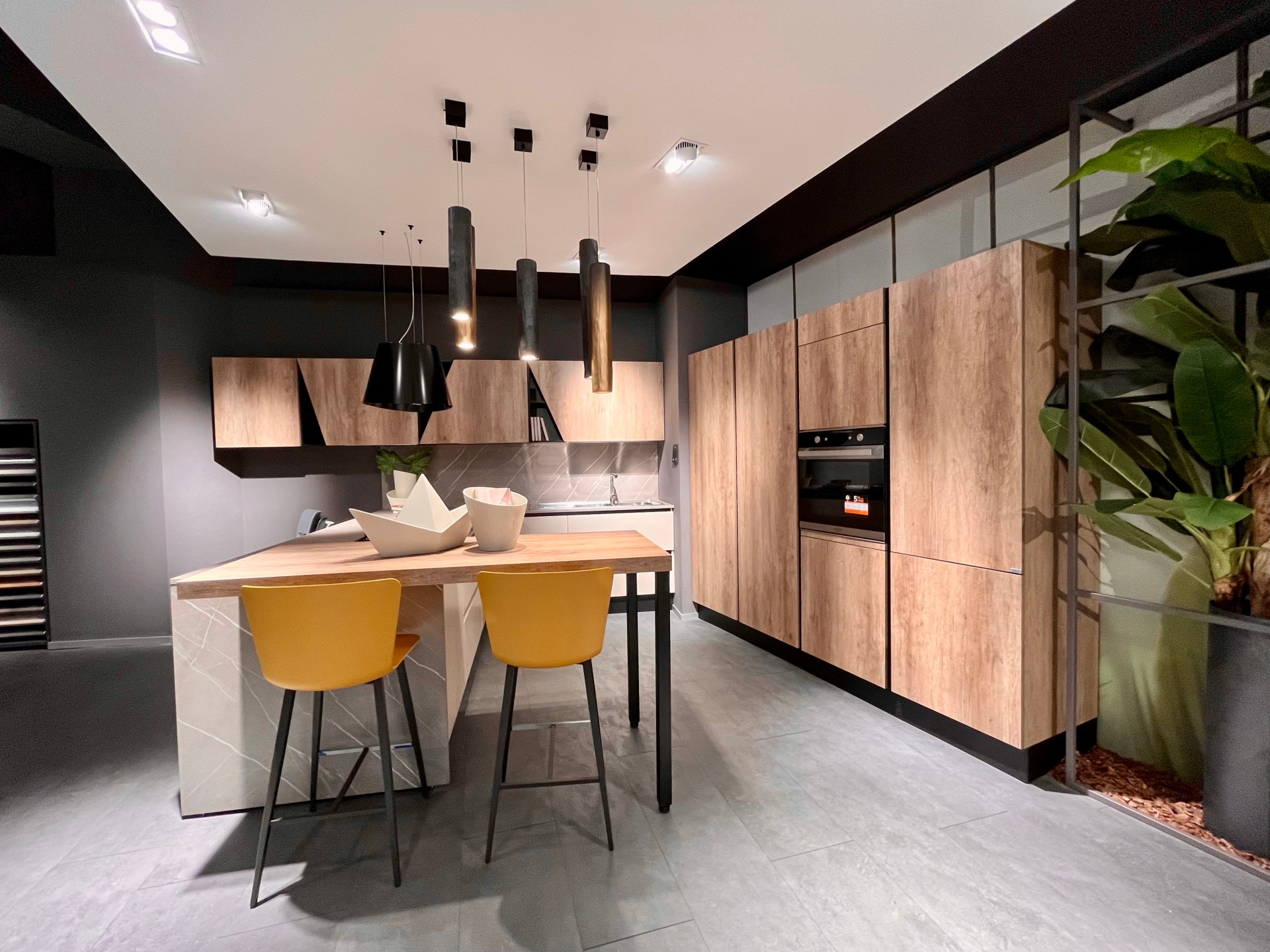 Stefano Boeri, l’architetto che ha progettato il Bosco Verticale, ha disegnato ‘Oasi’, declinando il tema della coesistenza uomo-albero attraverso un oggetto d’arredo: al centro del corpo-cucina fuoriesce un albero di limoni con all’interno un sistema di irrigazione per facilitarne la manutenzione. Un altro dei nostri designer è il giapponese Makio Hasuike, compasso d’oro all’architettura, che ha progettato ‘Sipario’, con un’isola sospesa dal pavimento, disponibile in diverse finiture e può fungere da piano di lavoro oltre che da tavolo per momenti conviviali. E poi c’è anche il progetto ‘CUCINAnD’O’ dello chef milanese Davide Oldani, dove la definizione e la distribuzione degli spazi rispecchiano i valori di cucina sostenibile e di essenzialità, di cui lo stesso Oldani è portatore.