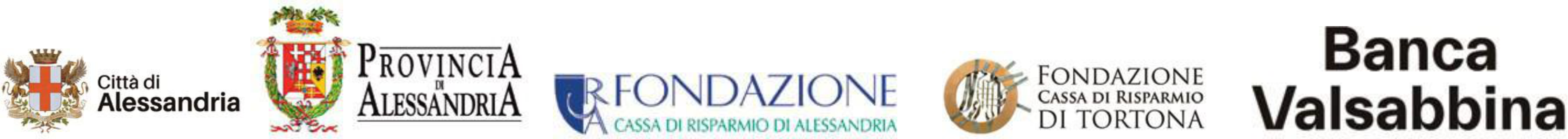 L’iniziativa è realizzata con il Patrocinio degli Enti Comune di Alessandria e Provincia di Alessandria, con il sostegno della Camera di Commercio di Alessandria- Asti e della Fondazione Cassa di Risparmio di Tortona e della Fondazione Cassa di Risparmio di Alessandria, insieme ad altri sponsor privati tra i quali Banca Valsabbina, Generali Assicurazioni Ag.AL, Arte- spazio S.r.l., Prometeia